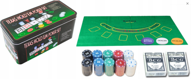 ✔️ Вміст набору: Фішки для покеру, карти, килимок, кубики